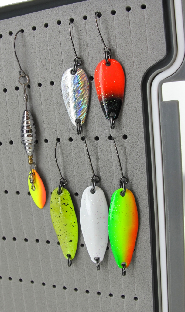 Spoony-Box Diese super-flache Box mit integriertem EVA eignet sich ideal für den Transport von kleinen Forellen-Spoonys oder Spinner. Sicher, platzsparender und geordneter Transport von Kunstködern.